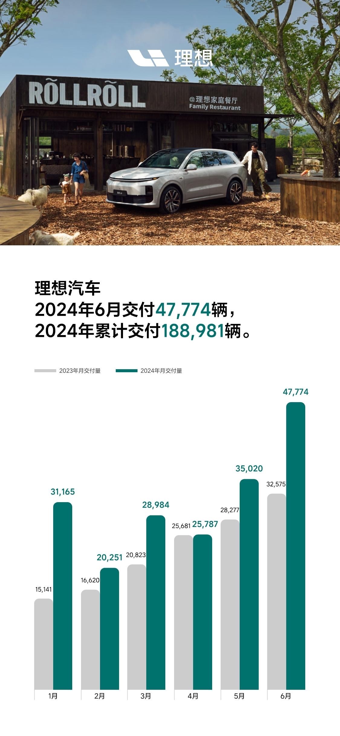 其中,理想汽车6月交付新车47,774辆,同比增长46.7%;二季度交付10.8万辆,同比增长25.5%。理想董事长李想透露,6月,理想L6交付量突破两万辆,并且在门店效率提升的双重作用下,理想汽车重回中国新势力品牌销量榜首。接下来,理想将在7月初全量推送无图NOA的AD Max,实现全国都能开。