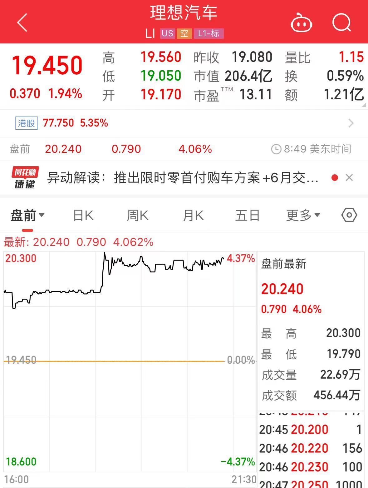 盘面上,截至发稿,理想汽车美股盘前大涨超4%。截至港股今日收盘,理想汽车股价大涨超5%。