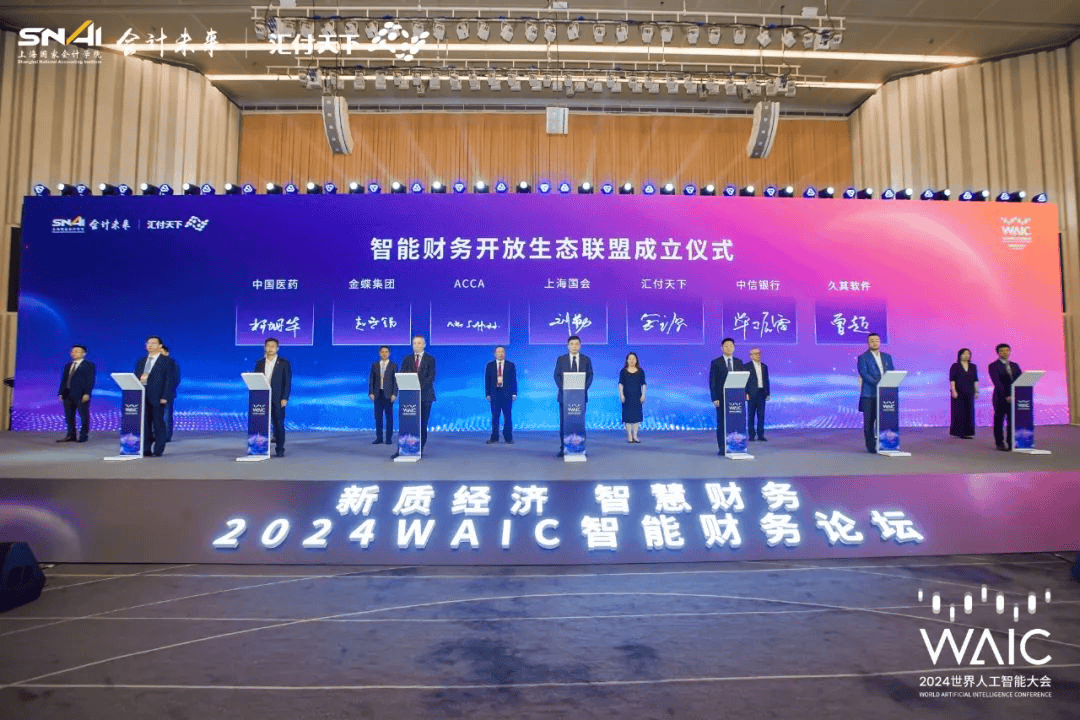 在2023年的WAIC智能财务论坛上,由上海国家会计学院和汇付天下领衔,汇聚应用企业、银行、支付、系统服务商、税务、咨询、研究等各专业机构,成立了“智能财务开放生态联盟”,经过一年的发展与沉淀,“智能财务开放生态联盟”成功扩容,迎来了一批全新成员。在财政部会计司副司长王东,上海国家会计学院院长、党委副书记卢文彬,上海市经信委软件与信息处处长裘薇,汇付天下董事长兼CEO周晔,上海国家会计学院党委委员、纪委书记包骁文,中国金融信息中心党委委员、总裁张凤明,金蝶集团董事会主席兼CEO、财政部全国会计信息化标准化技术委员会委员徐少春,中信银行上海分行党委书记、行长赵元新,汇付天下执行董事兼总裁穆海洁的见证下,来自上海国家会计学院智能财务研究院、ACCA、汇付天下、金蝶集团、中信银行、中国医药(600056)、久其软件(002279)、浪潮集团、用友网络(600588)、申能集团、复星集团、艺赛旗、上海机场(600009)、本来生活等14家企业和机构的代表在本次论坛上完成生态联盟签约,各方将合作并进,携手共创,推动企业财务智能化建设创新升级。