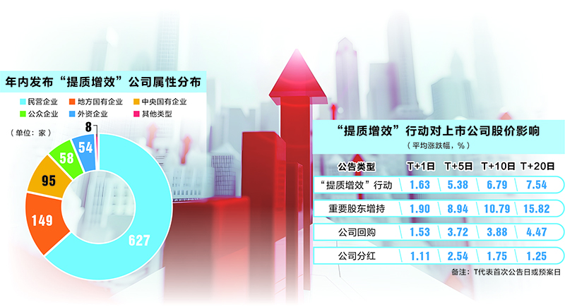 “提质增效”不仅仅停留在口头上,上市公司通过回购、分红,重要股东通过增持等方式,以真金白银维护市场稳定,体现了对回馈投资者的重视。